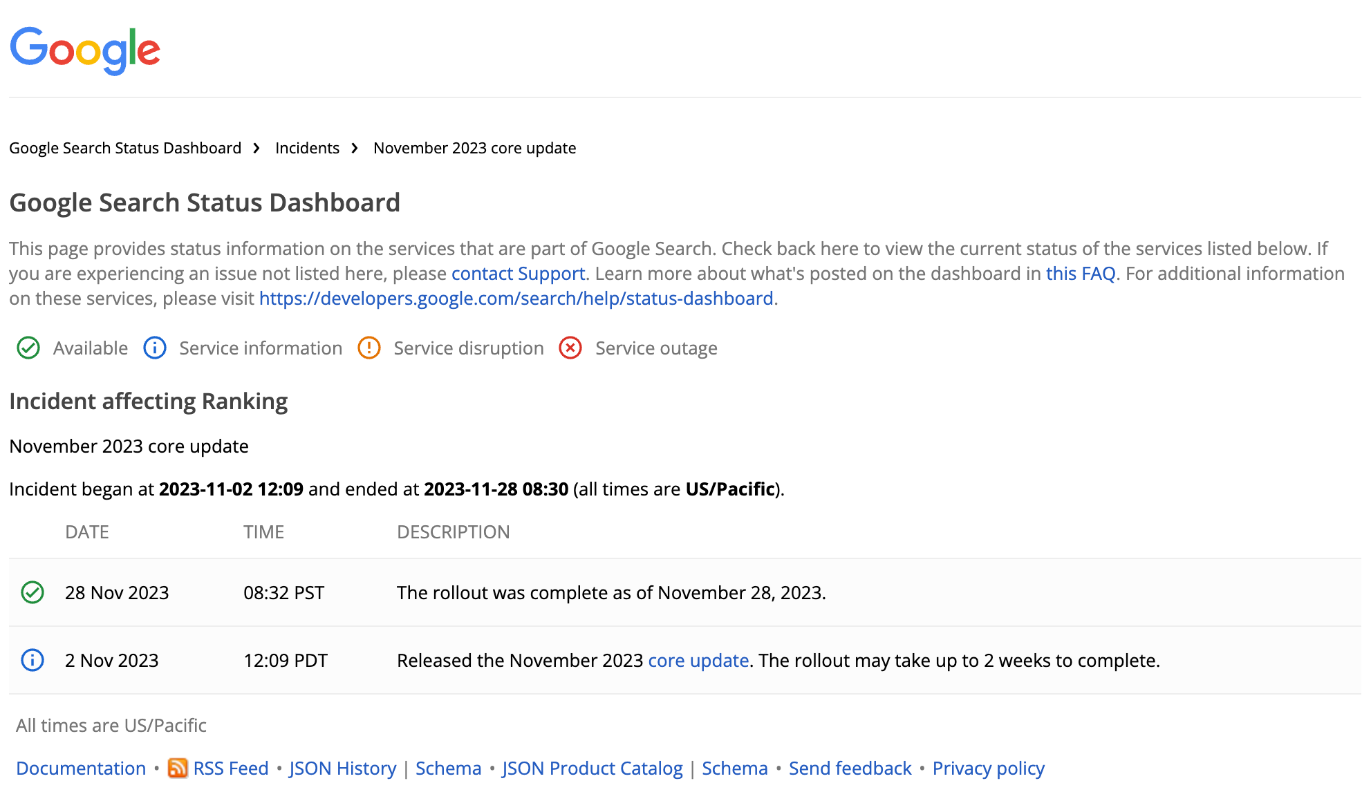 Google’s November 2023 Core Algorithm Update has finished, what next?: Google’s November 2023 Core Algorithm Update ran over 26 days, starting on November 2nd and completing on November 28th.