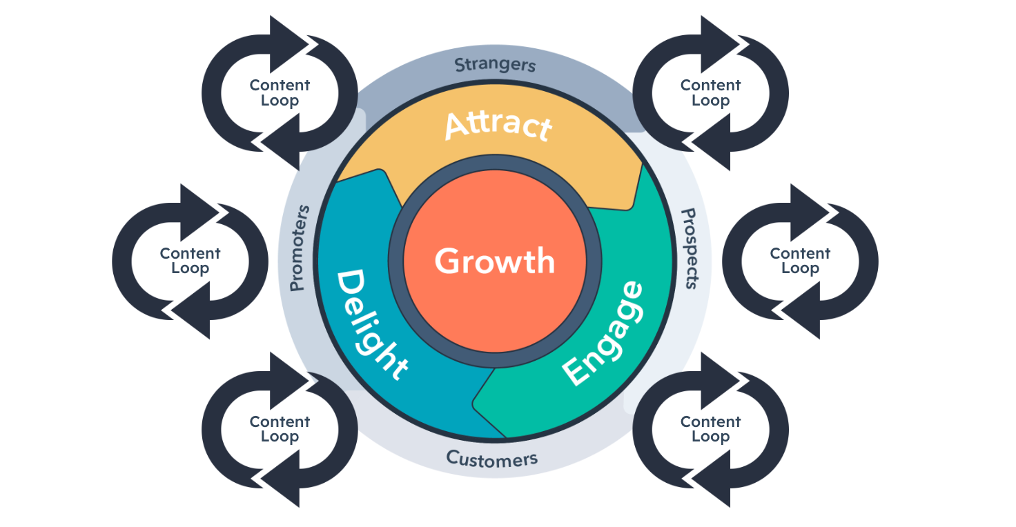 Rewrite your marketing playbook for this new landscape. This playbook should still be based on the growth flywheel framework (HubSpot) across Attract, Engage and Delight phases, but the tactics used to create effective content loops that fuel the flywheel need to evolve.