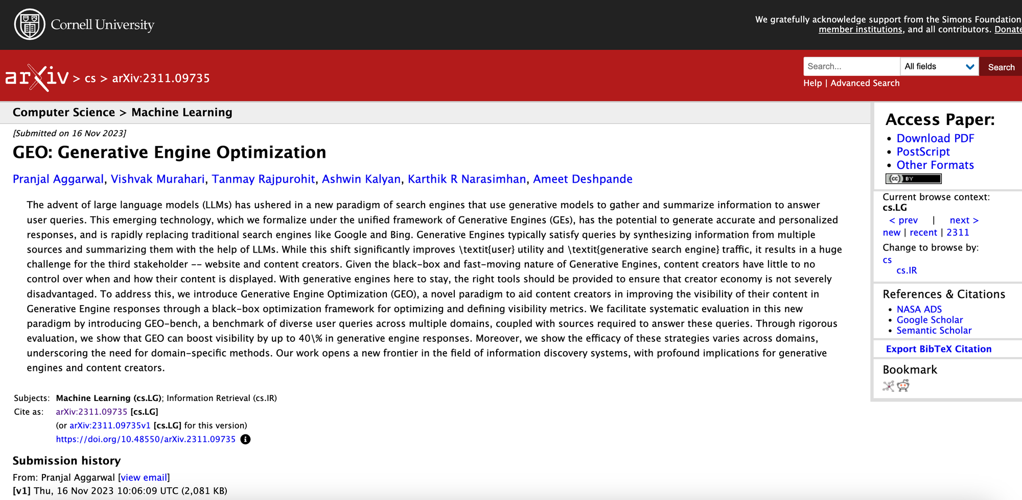 - Marketers should consider the concept of “Generative Engine Optimization (GEO)” based on this research, with nine optimisation tactics referenced (many of these align with EEAT frameworks):