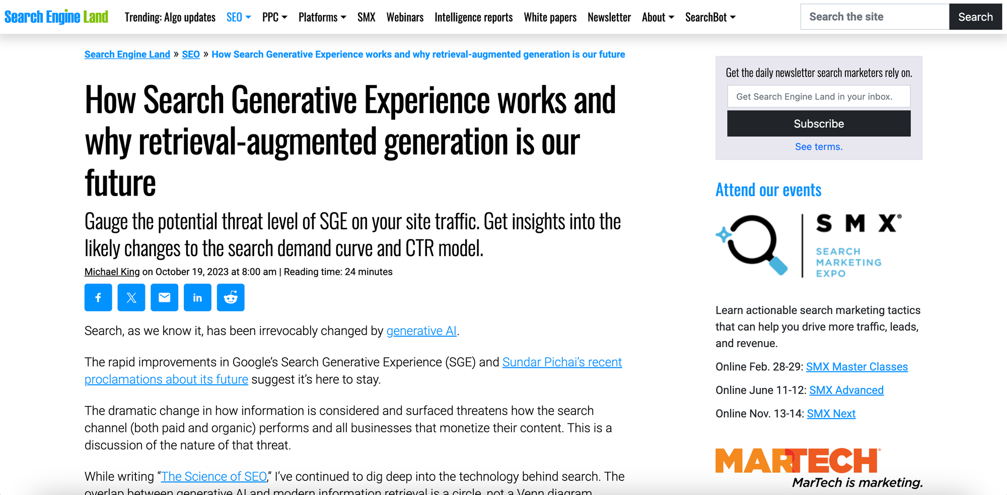 How Search Generative Experience works and why retrieval-augmented generation is our future (Michael King, SEJ). Key takeaways: